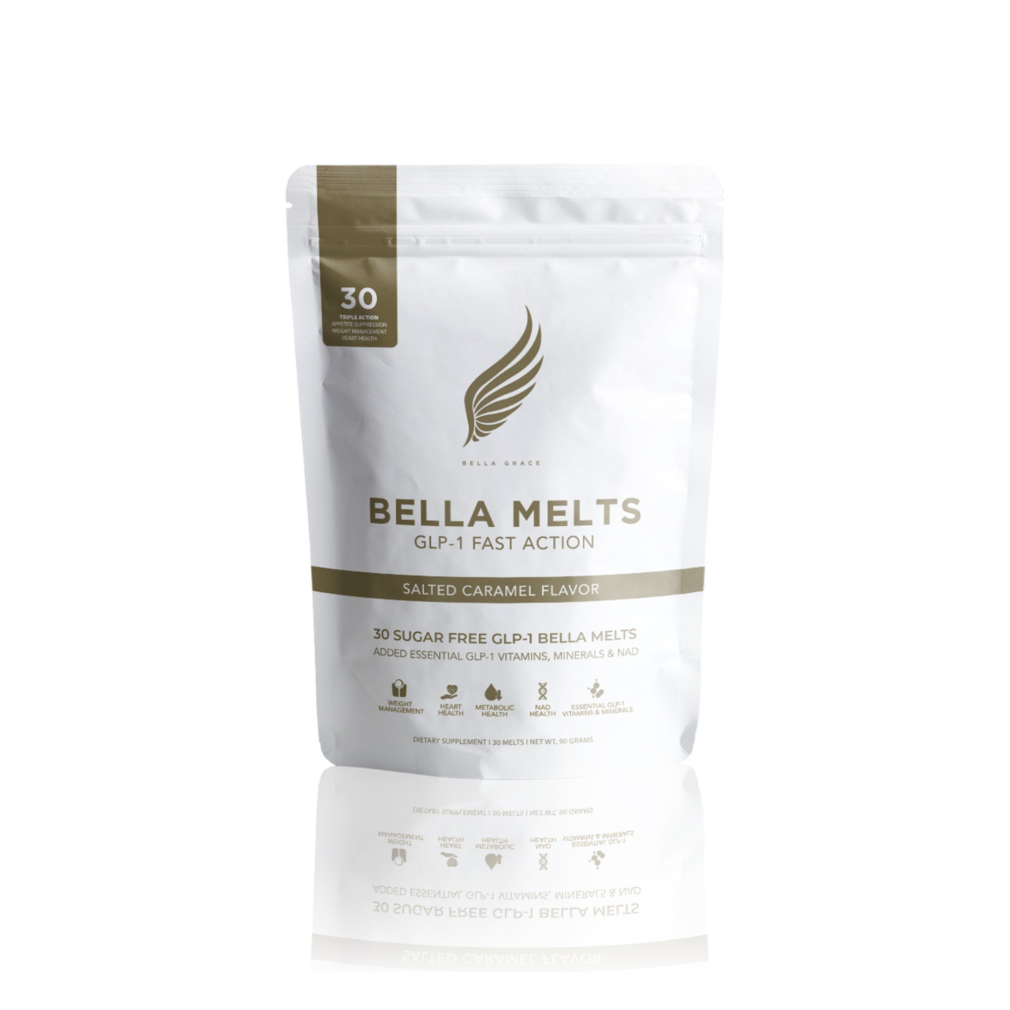 Bella Melts é um delicioso doce de caramelo com poderosos ingredientes botânicos e nutrientes essenciais. Cada pastilha sem açúcar atua naturalmente no seu corpo para ativar o GLP-1, ajudando-o a sentir-se saciado mais rapidamente, a manter-se satisfeito, a acalmar os desejos e a queimar mais calorias.