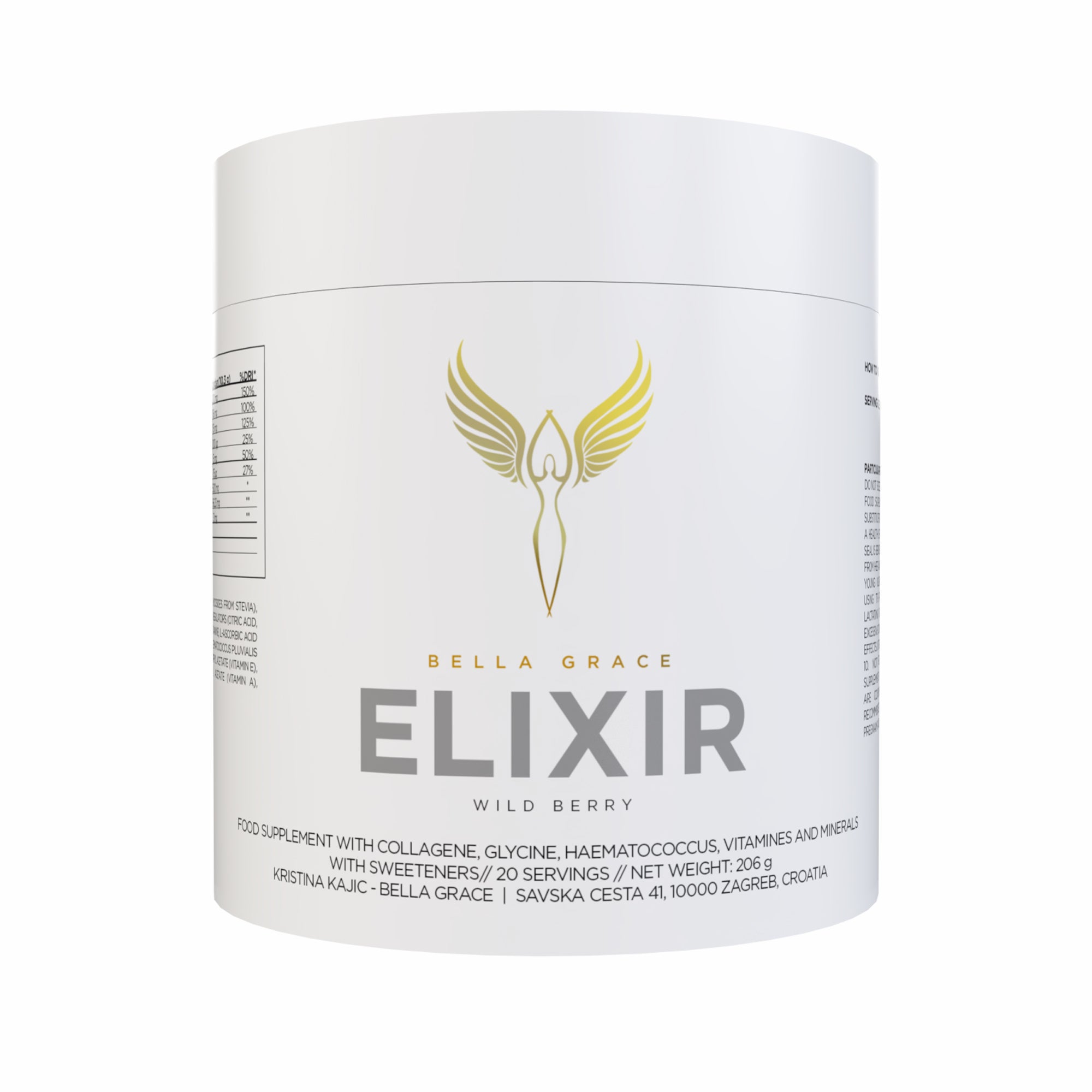 O Elixir de Bella Grace, o seu suplemento definitivo para o bem-estar total do corpo, contém o que nenhum outro produto de colagénio faz: o Colagénio VERISOL® mais clinicamente comprovado do mundo combinado com AstaReal® Astaxantina. Esta mistura patenteada ajuda a regular os processos que reconstroem o colagénio, bem como oferece efeitos antioxidantes e anti-inflamatórios.